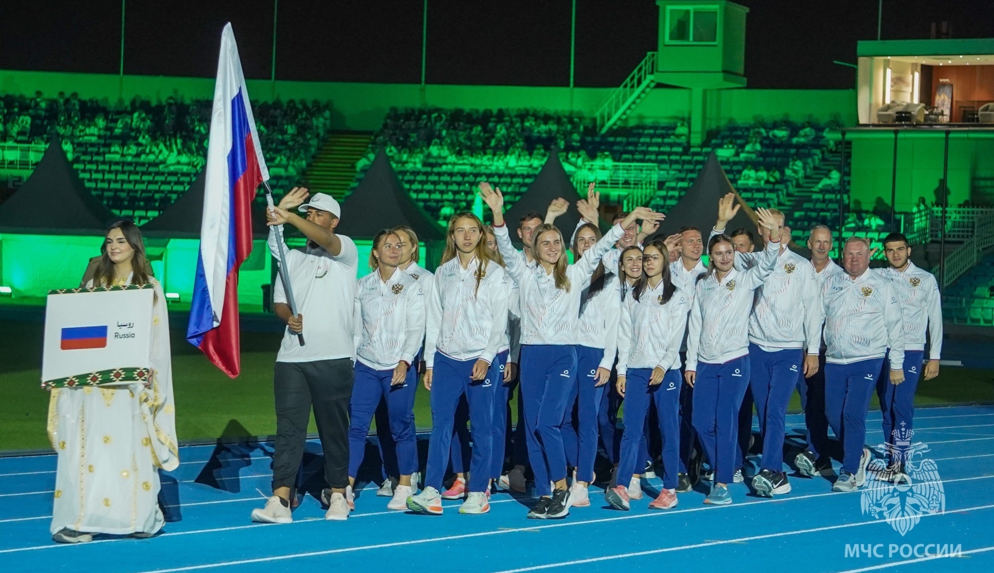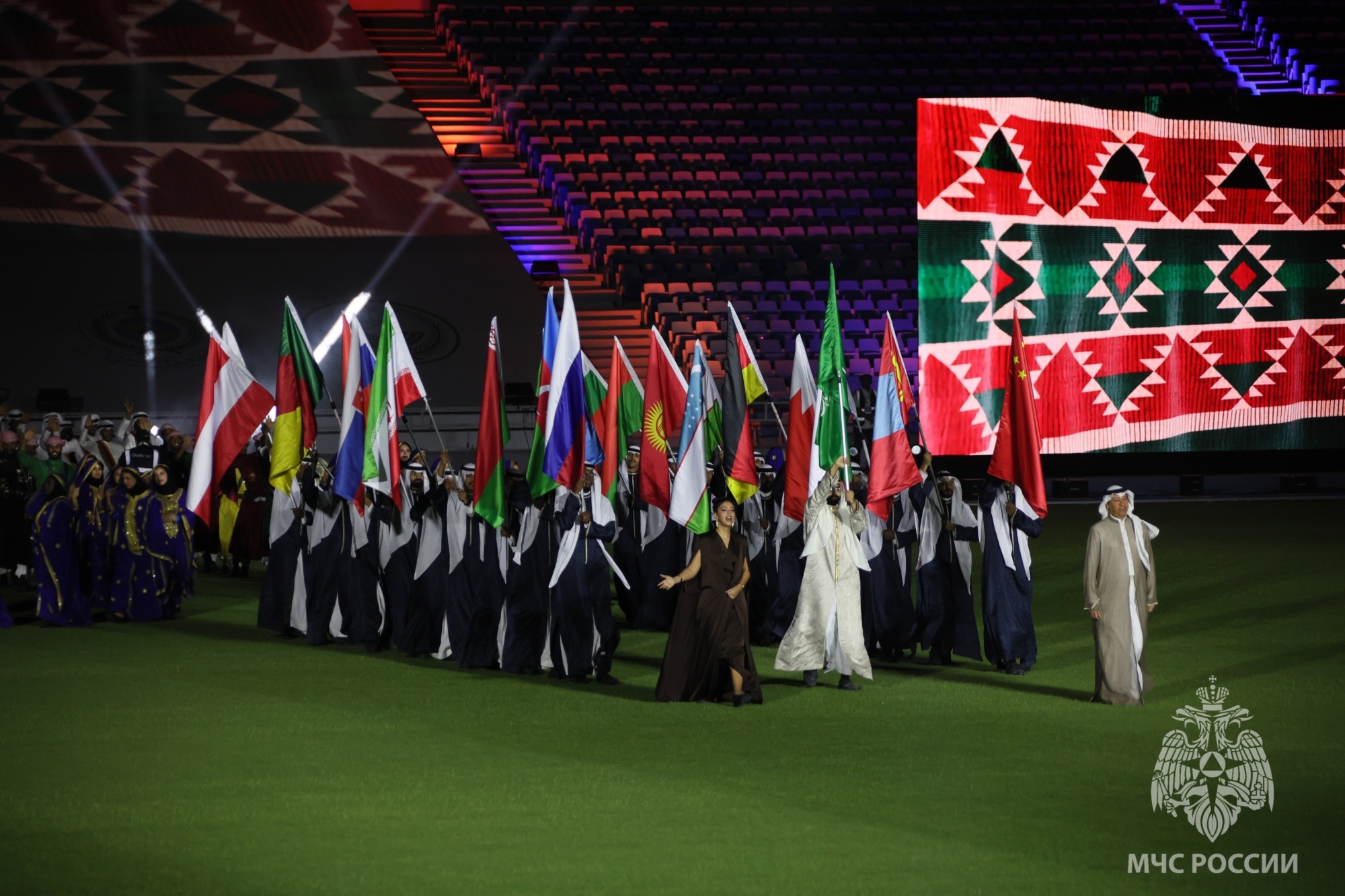 На главном стадионе Королевства Саудовской Аравии состоялась церемония открытия чемпионатов мира, в которой принял участие глава МЧС России Александр Куренков.